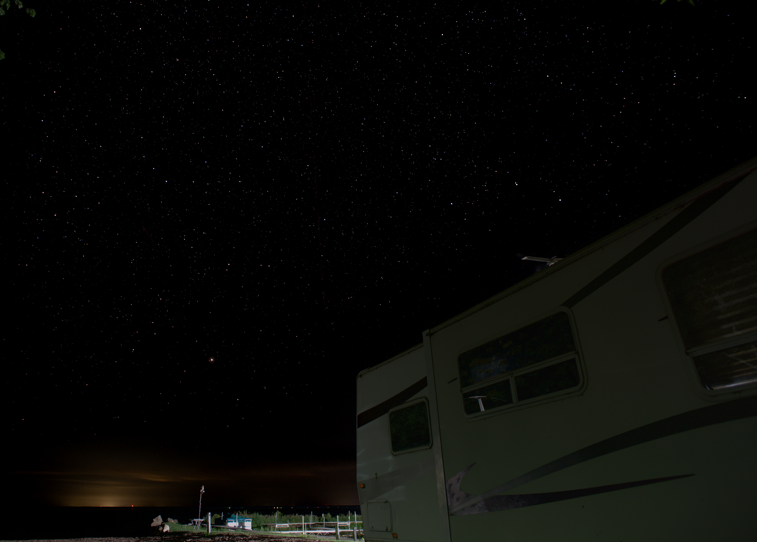 at Castaways and the neighboring camper.... The glow in the distance is from the other side of the lake in Garrison, MN.