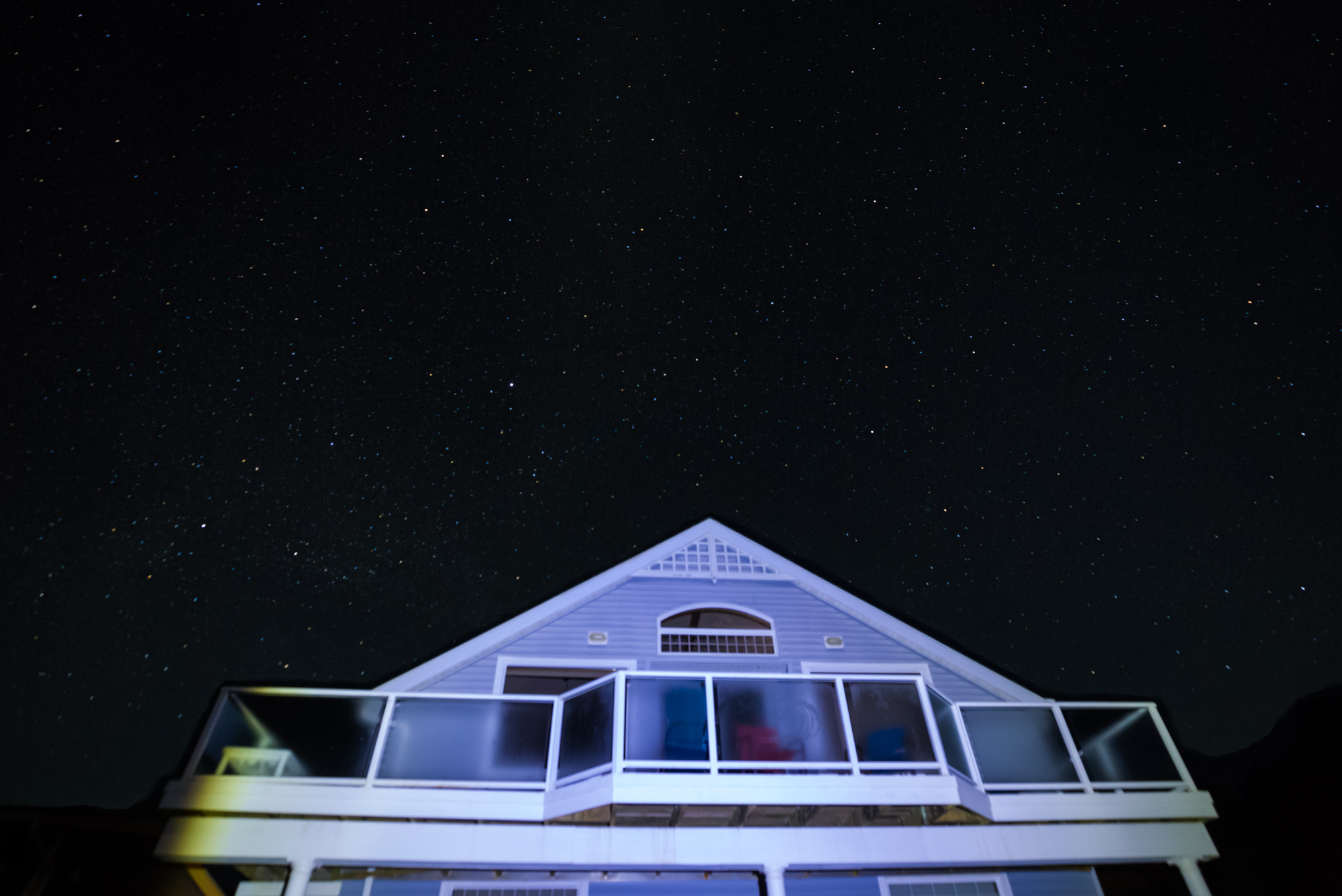 These were the stars shining to the east behind our rental house in Oregon. I superimposed a lit up foreground shot in this one.
