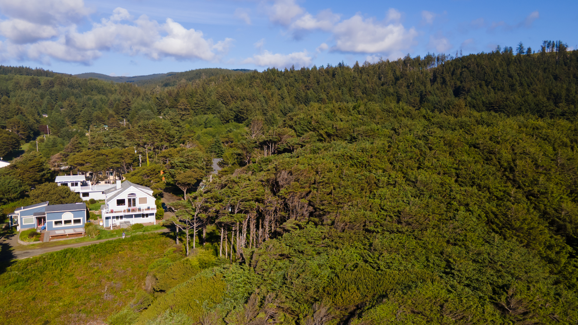 Drone shot of the area with our rental house (one on the right)