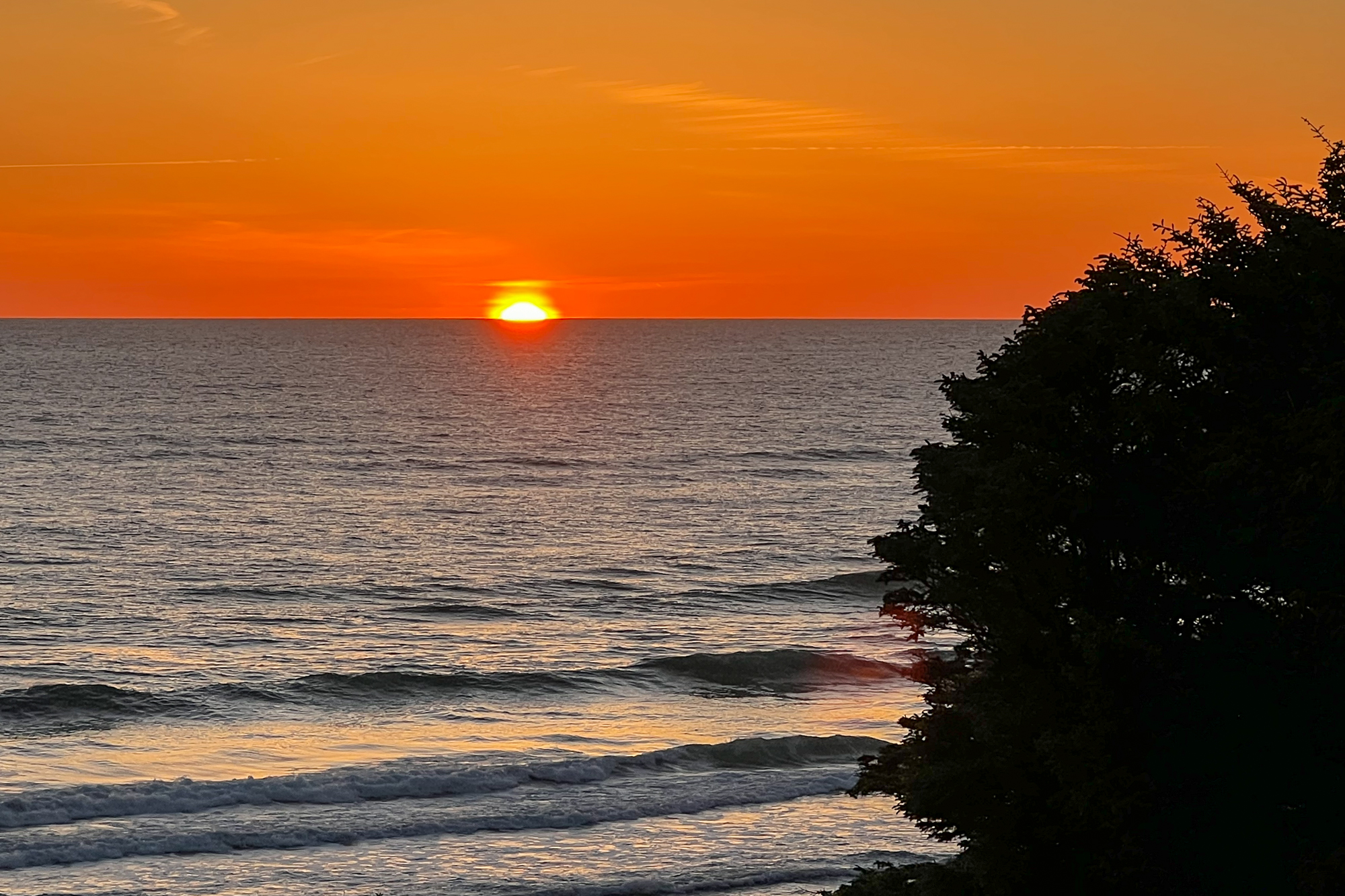 This shot actually shows the sun bisected by the horizon. The sky turned an amazing orange too.