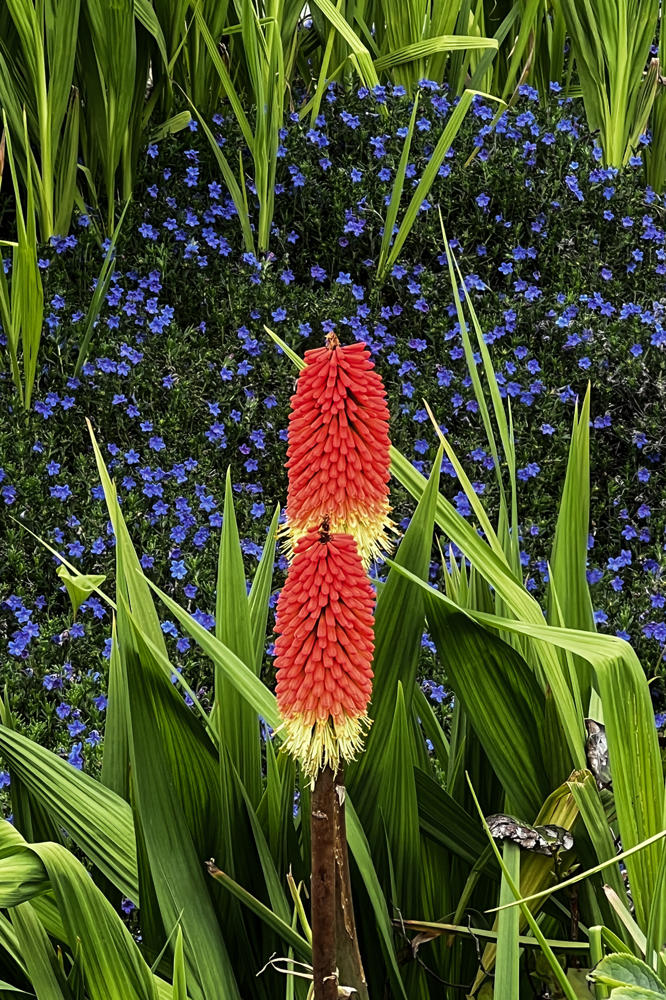 Description: Not sure what these flowers are, but they had them all over town. These were taken along the "401 trail" in a garden near one of the resorts. The purple lobelia really set them off I thought.